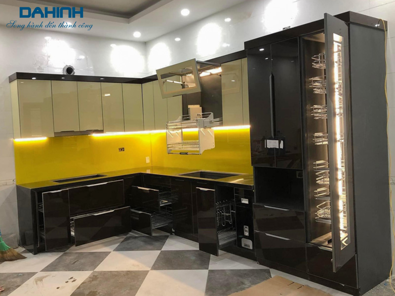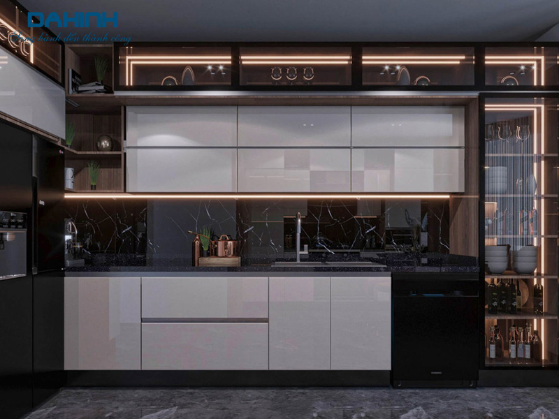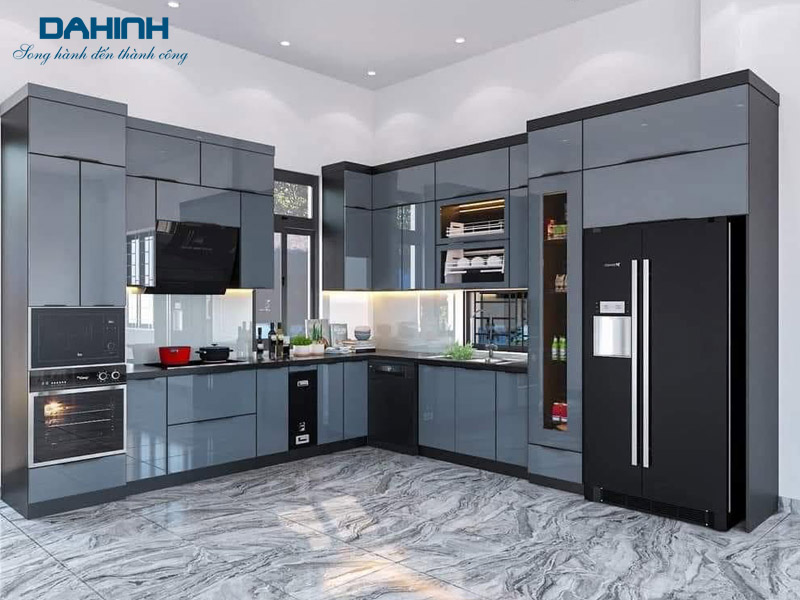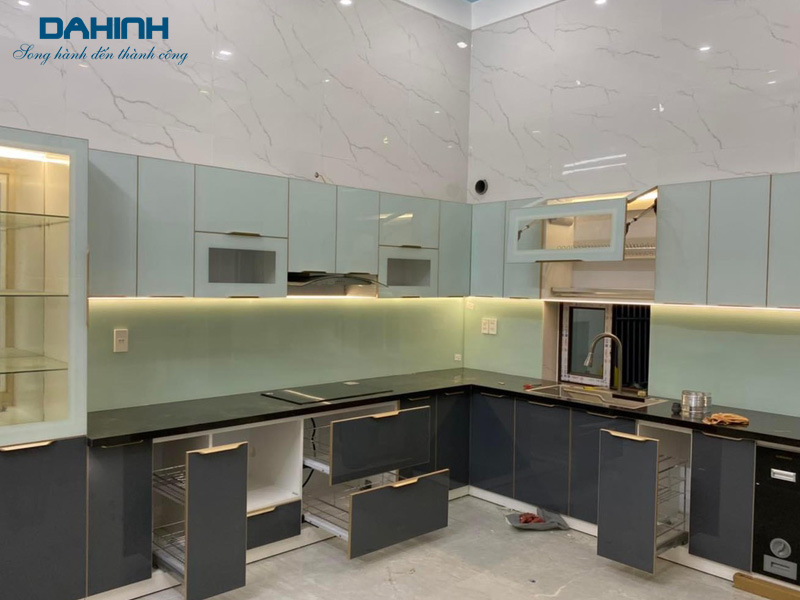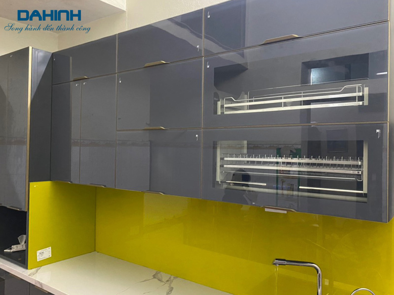 Cửa tủ bếp làm bằng nhôm không thấm nước nên không xảy ra tình trạng phồng rộp như cánh tủ làm bằng gỗ.