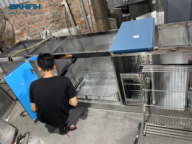 Khung bếp inox được lắp ráp bằng vít chuyên dụng để tạo nên một kết cấu vững chắc mà vẫn đảm bảo sự linh hoạt.