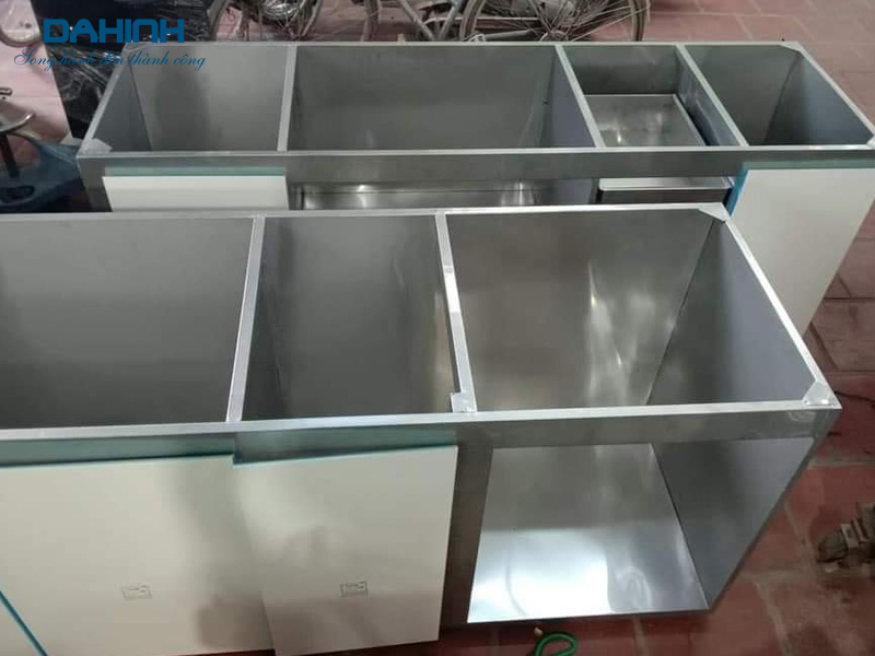 – Khung và thùng tủ bếp: vì tủ bếp dưới là nơi tiếp xúc nhiều với nước nên chúng thường được làm inox 304 sáng bóng.
