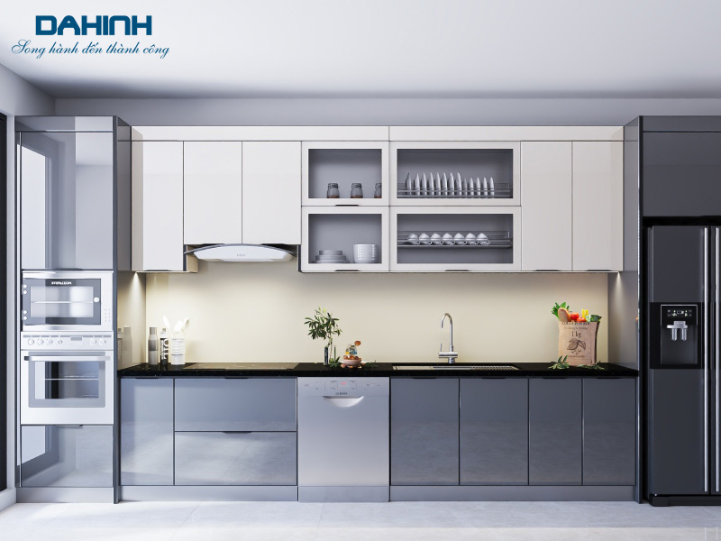 Ưu điểm của tủ bếp khung inox cánh kính: