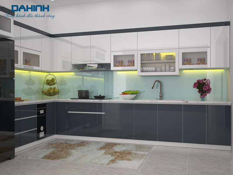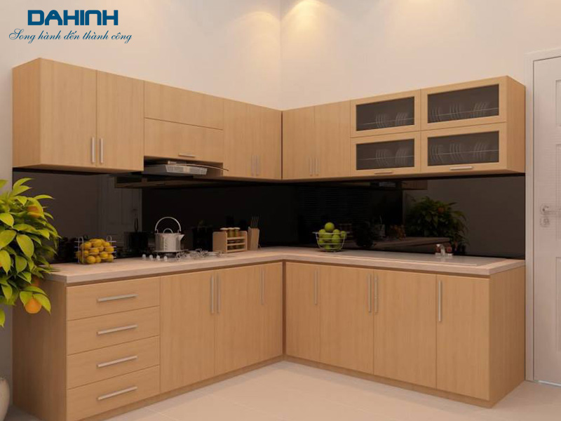 – Cánh tủ bếp sử dụng cốt nhựa bằng acrylic hoặc laminate chống ẩm tuyệt đối.
