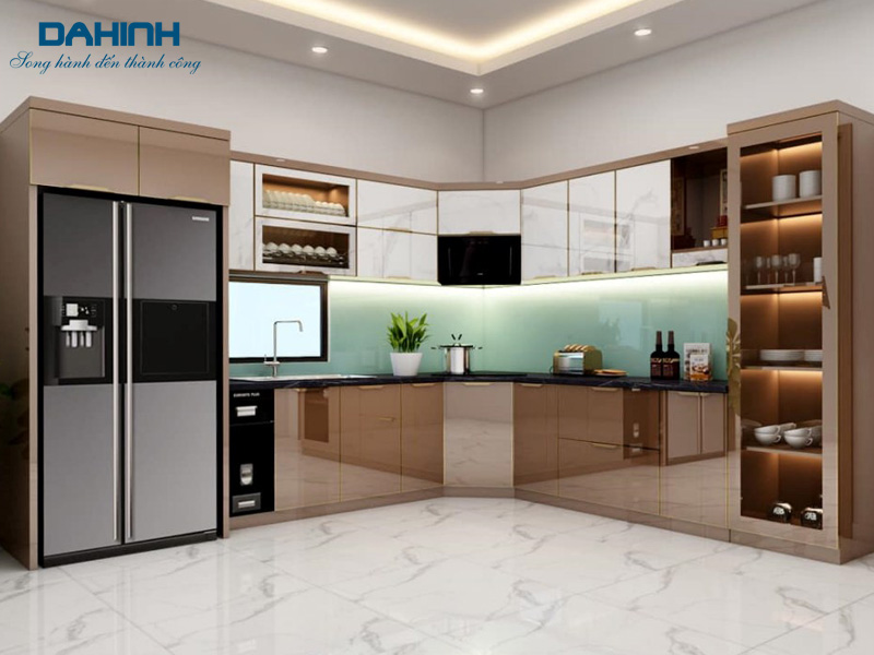 Tủ bếp khung inox cánh nhôm là sản phẩm được đánh giá cao về tính thẩm mỹ và chất lượng.