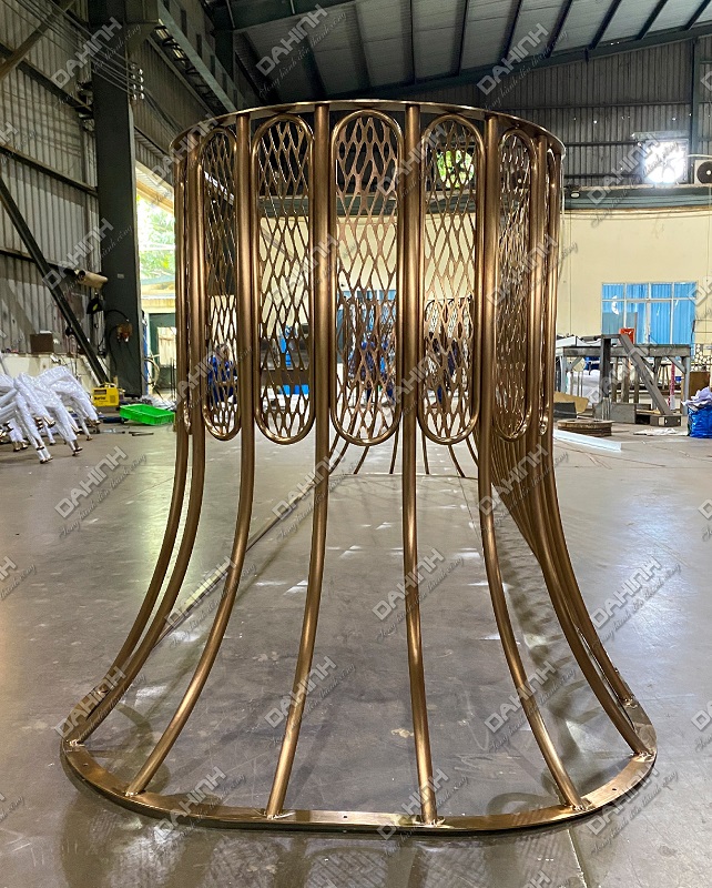 Một chiếc khung quầy lễ tân inox mạ vàng nổi bật sẽ là điểm nhấn hoàn hảo, kiến tạo không gian sang trọng, thu hút mọi ánh nhìn và tạo ấn tượng khó phai ngay từ khoảnh khắc đầu tiên.