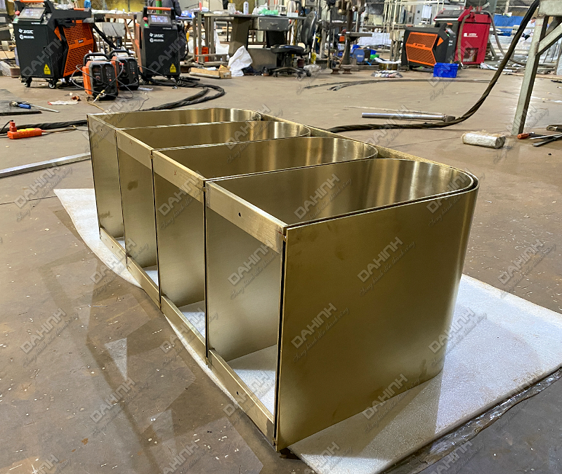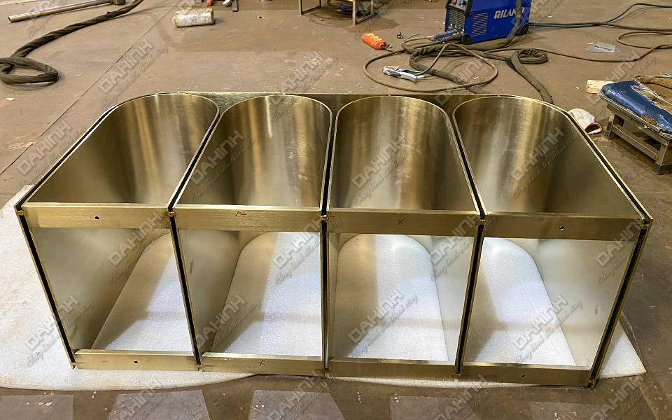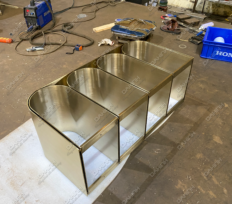 – Bệ đỡ thiết bị : Chính là sản phẩm mà Đa Hình vừa gia công. Đây là chân tủ lavabo inox 304 mạ PVD cao cấp.