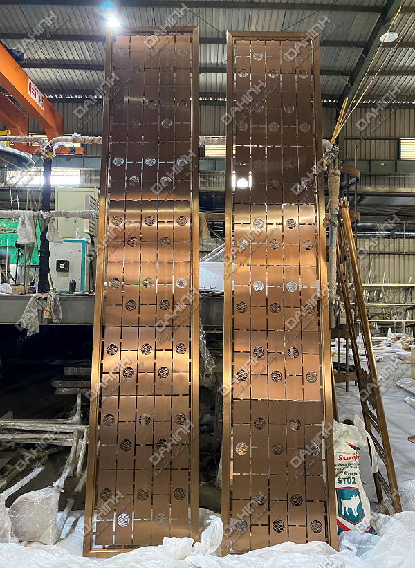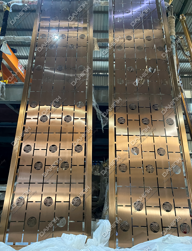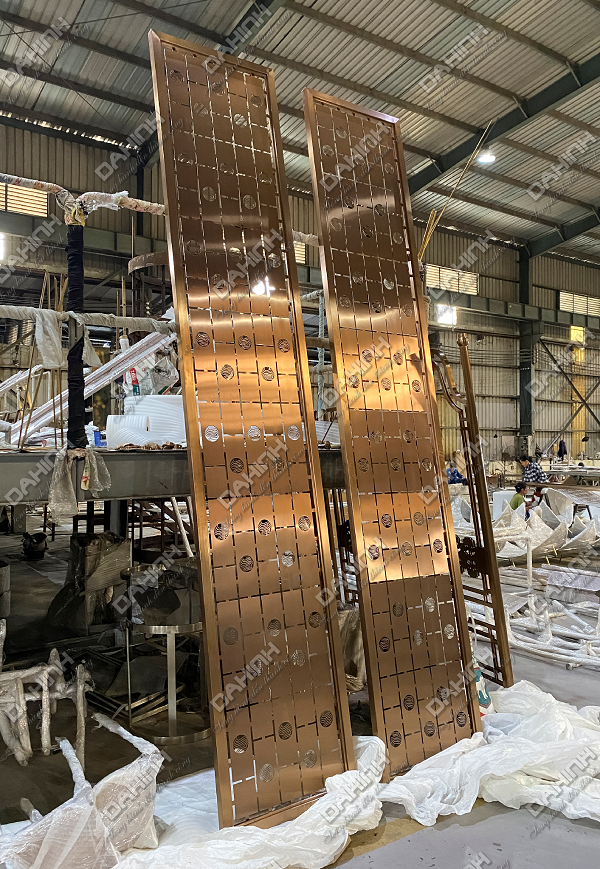 Sử dụng vách ngăn trang trí phòng khách đẹp bằng inox mạ PVD đang trở thành tuyên ngôn về gu thẩm mỹ thượng lưu, mang lại sự thoáng đạt và lộng lẫy cho ngôi nhà.