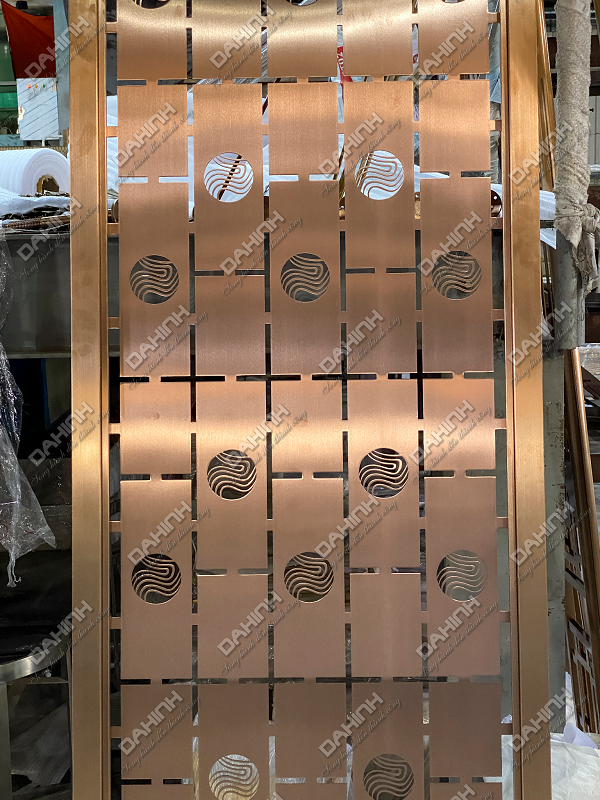 Đặc biệt, lớp mạ vàng đồng xước (brushed gold) không chỉ tạo độ sâu cho sản phẩm mà còn có ưu điểm là không để lại dấu vân tay, giữ cho vách ngăn trang trí đẹp luôn bền màu và sạch bóng theo thời gian.